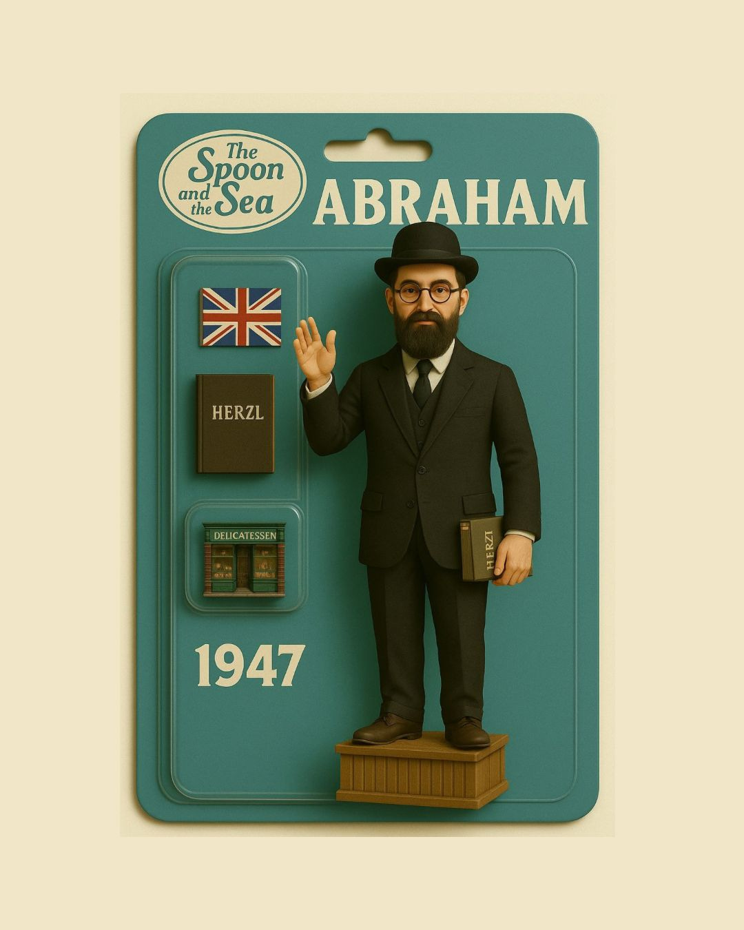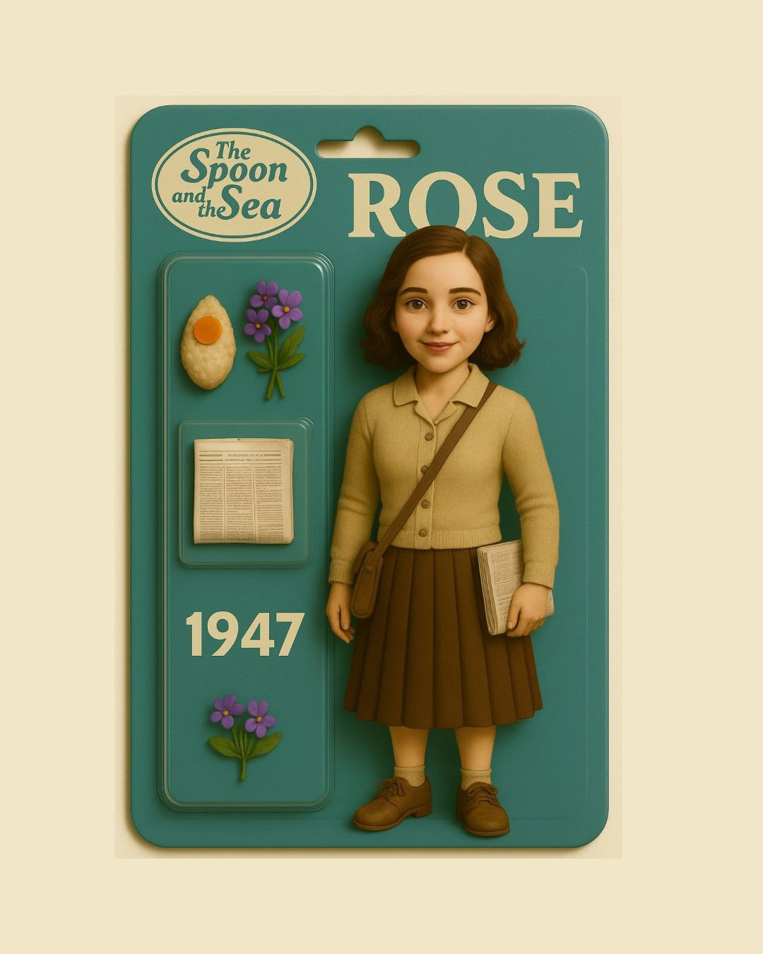 The background cardboard inside the box features a cohesive design and color scheme. Text is minimal and clear. The overall vibe is fun, nostalgic, slightly grainy, and visually expressive.